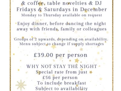 Including Arrival Drink, 3 Courses & Coffee, Table Novelties & DJ