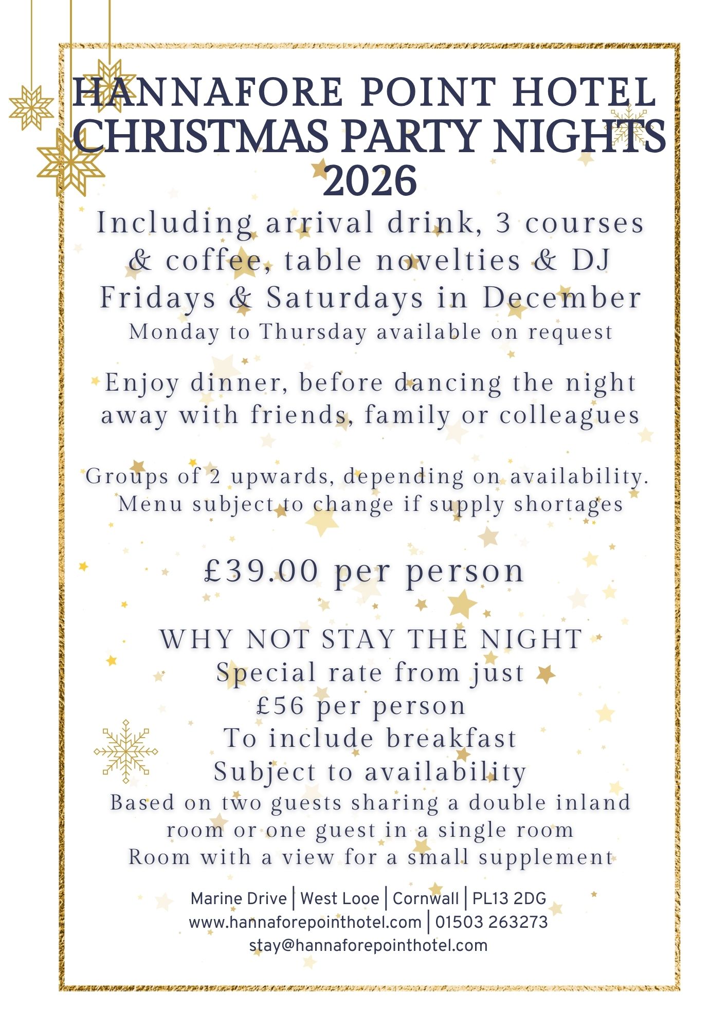 www.hannaforepointhotel.com | 01503 263273 | [email protected]