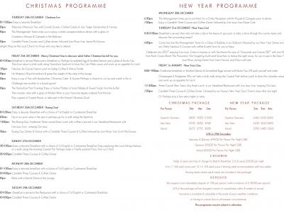 7.00pm: Candlelit Three Course & Coffee Dinner, followed by our famous New Year Quiz! Time to relax after last night.